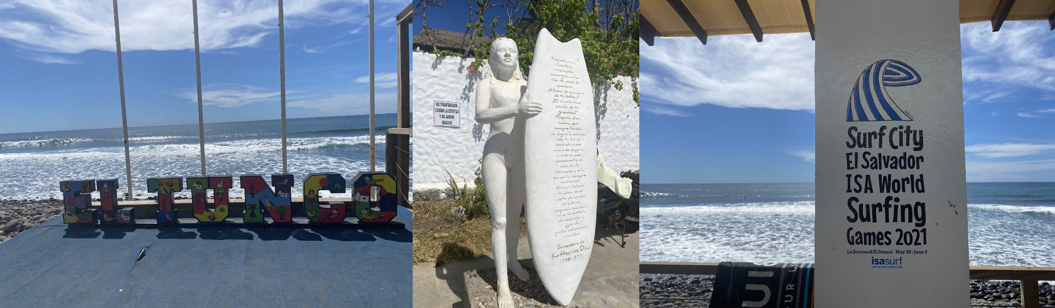 I headed left, carefully navigating the stones until I finally found a wooden path. Eventually, I spotted the El Tunco sign and learned they host world surf competitions. Nearby, I noticed a statue dedicated to a local female surfer who was lost at sea, which made me pause. It felt like a quiet moment of respect tucked into an otherwise loud, busy place.