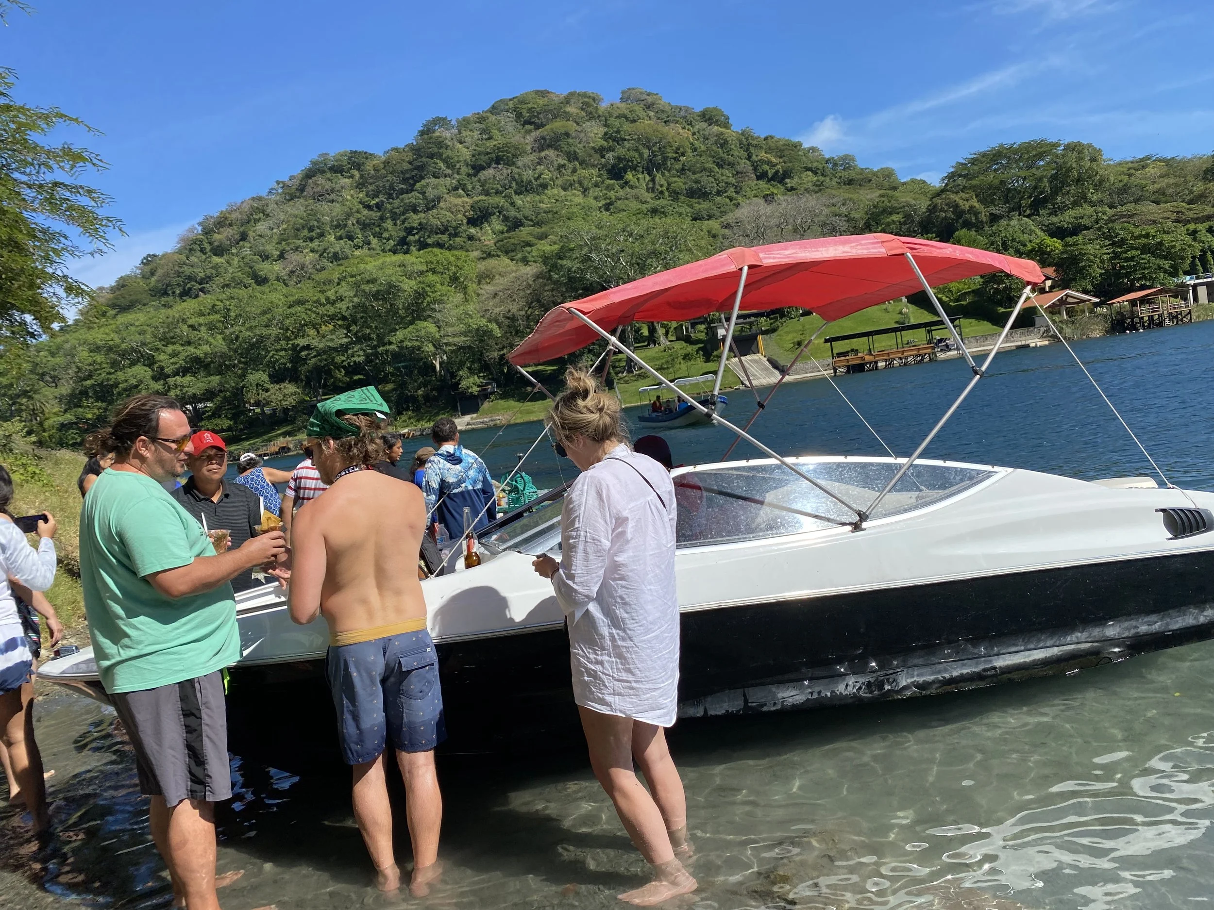 The first photo I took that day — already ankle-deep in the lake, beers in hand, and somehow part of a boat crew I’d just met.