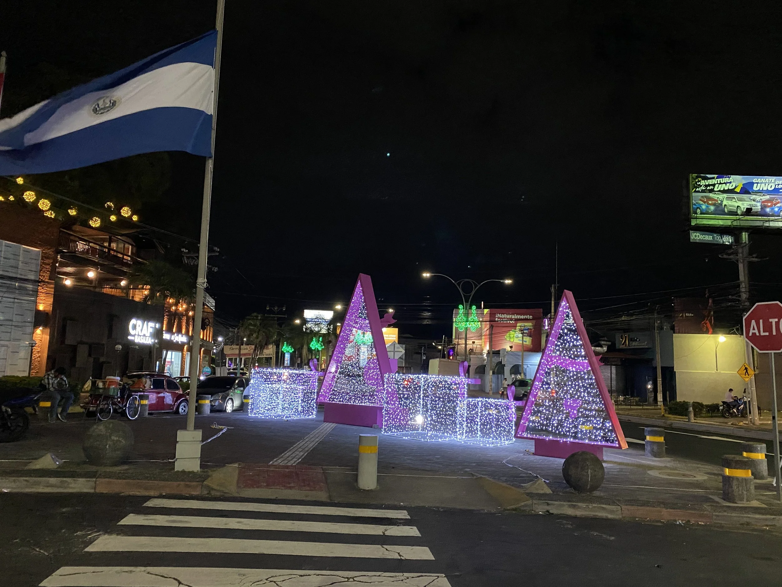 Festive lights glowing across San Salvador’s streets.