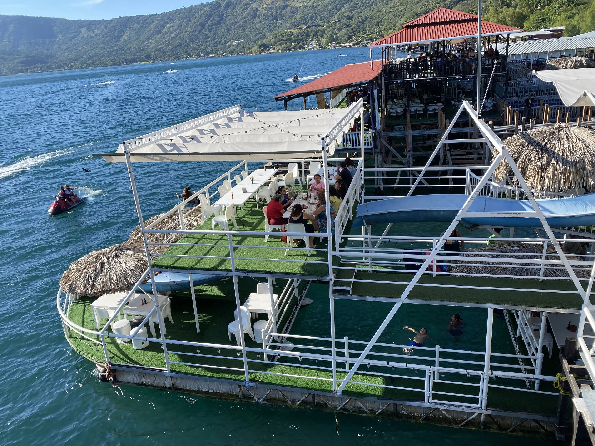 Floating bar raft on Lake Coatepeque — something I missed, but would love to try next time.