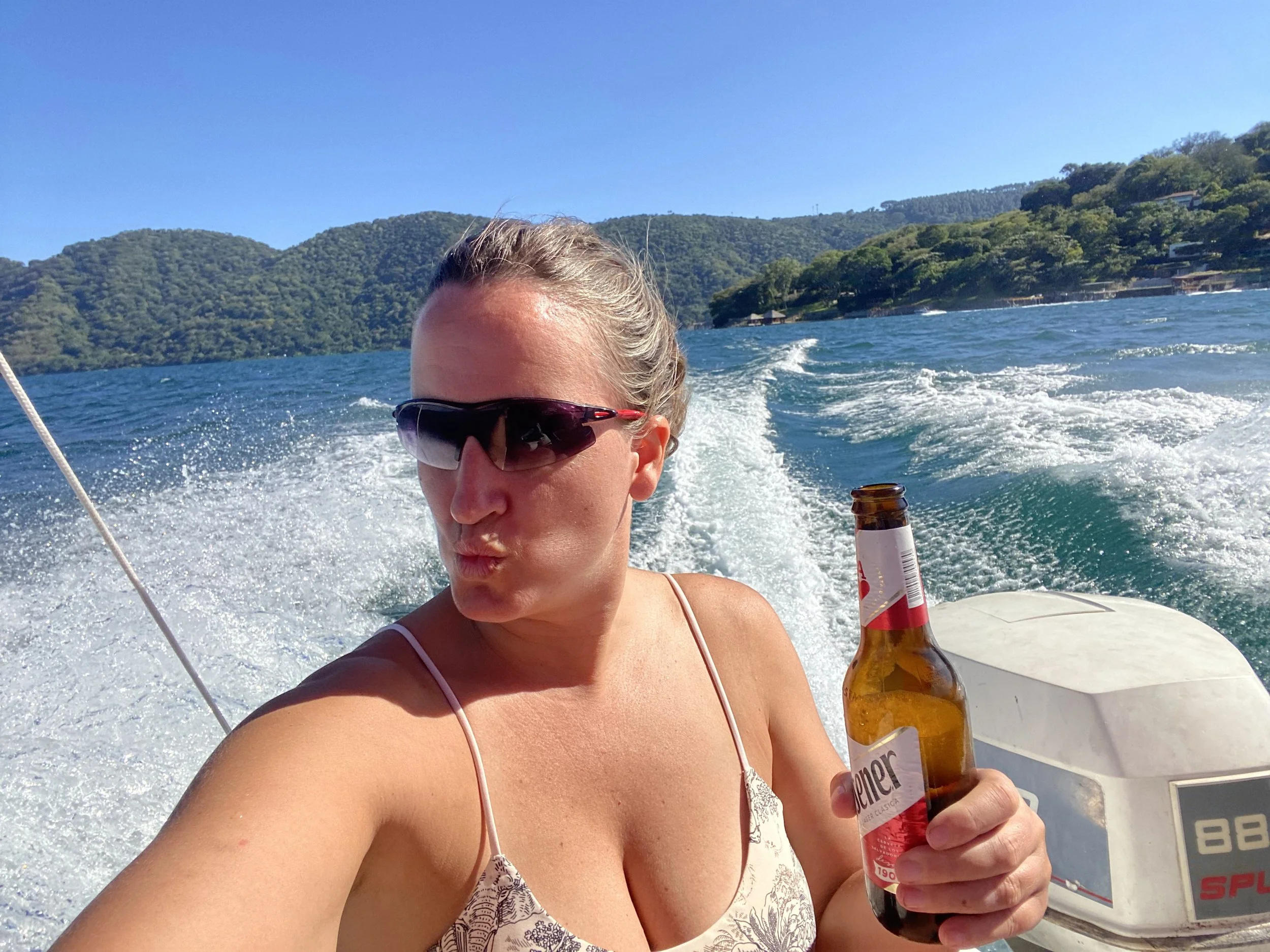 Floating in Lake Coatepeque with nothing to do but enjoy the water and the scenery.
