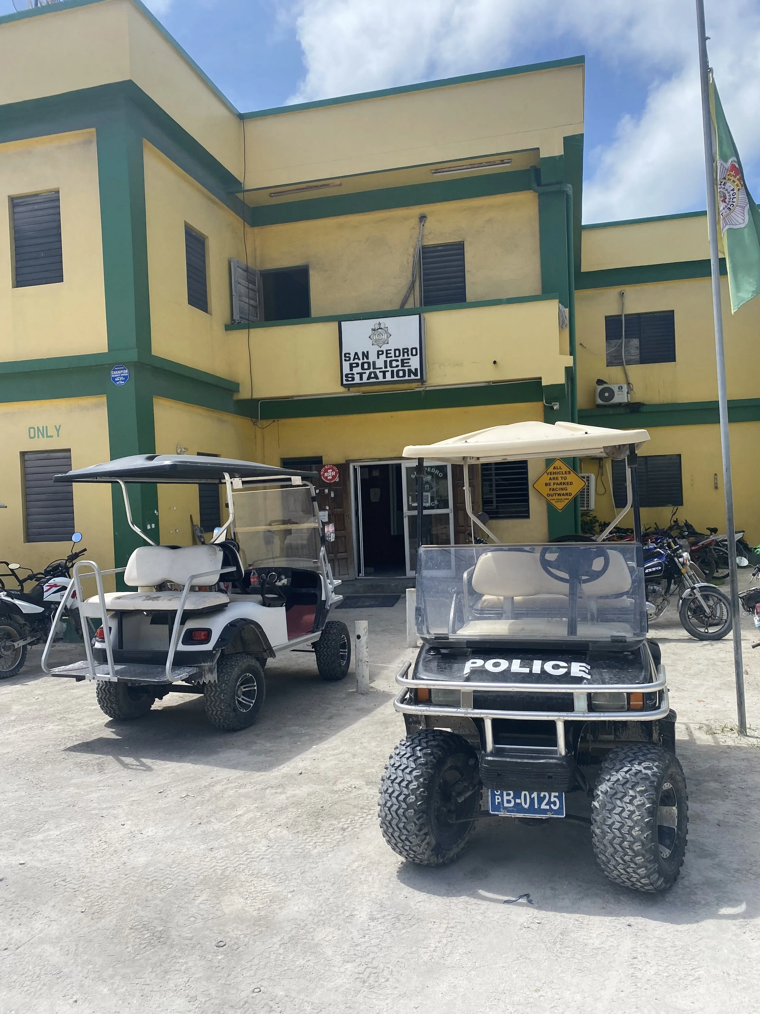 The best (and only) way to get around San Pedro? By golf cart — even the police drive them!
